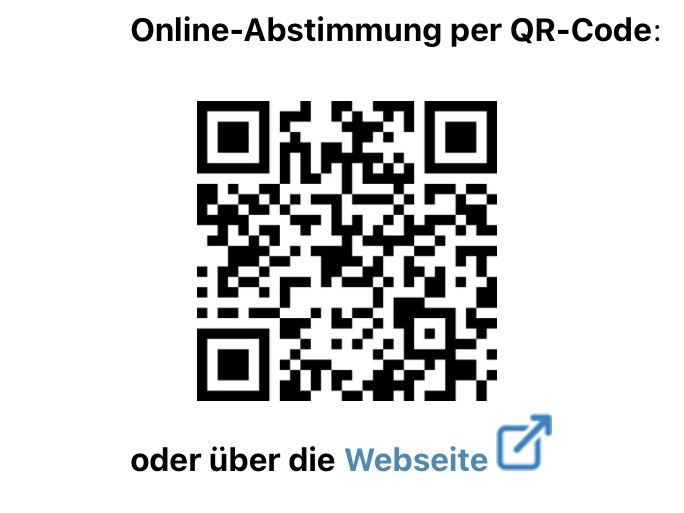 Über den beigefügten QR-Code kann man bei einer Publikumsabstimmung mitmachen und die ausgestellten Werke sehen.