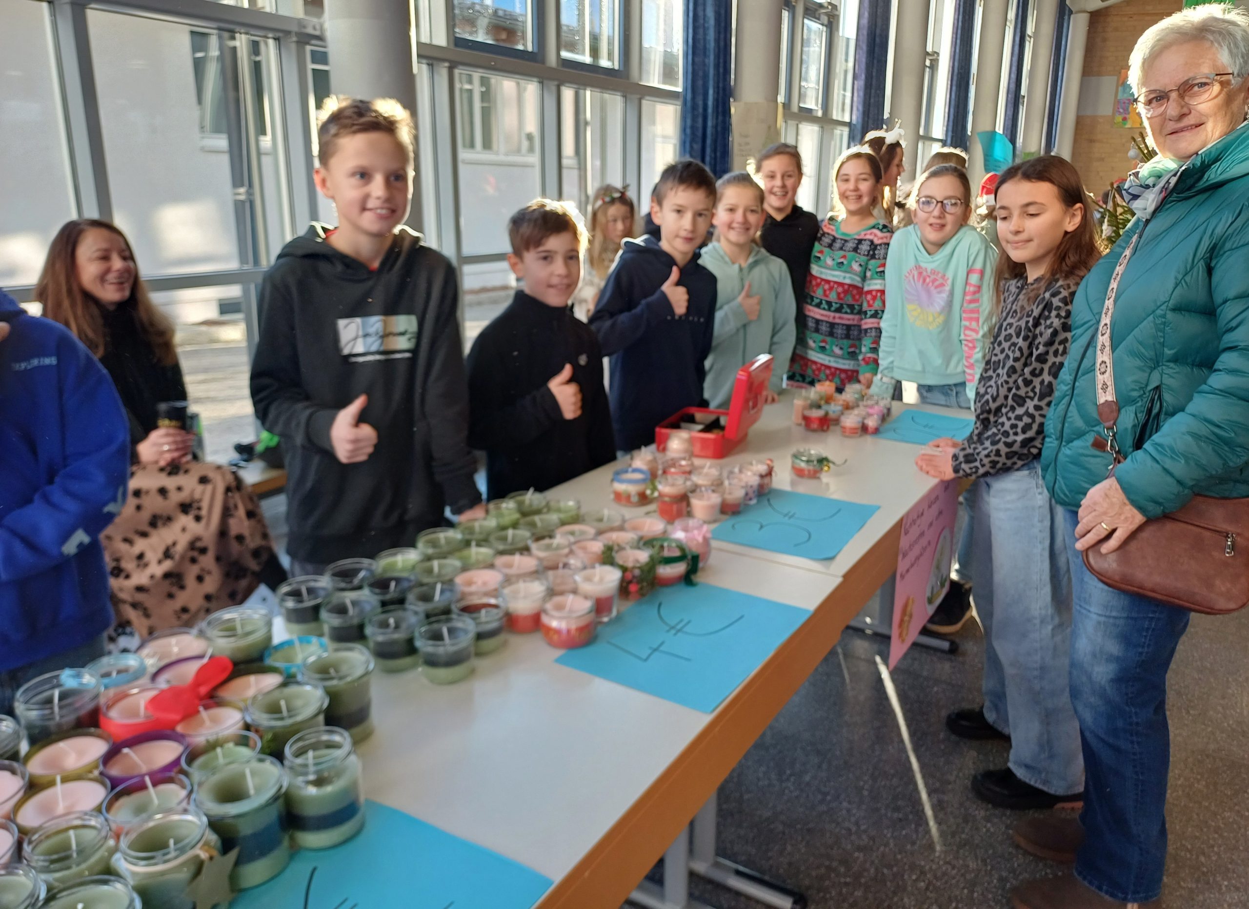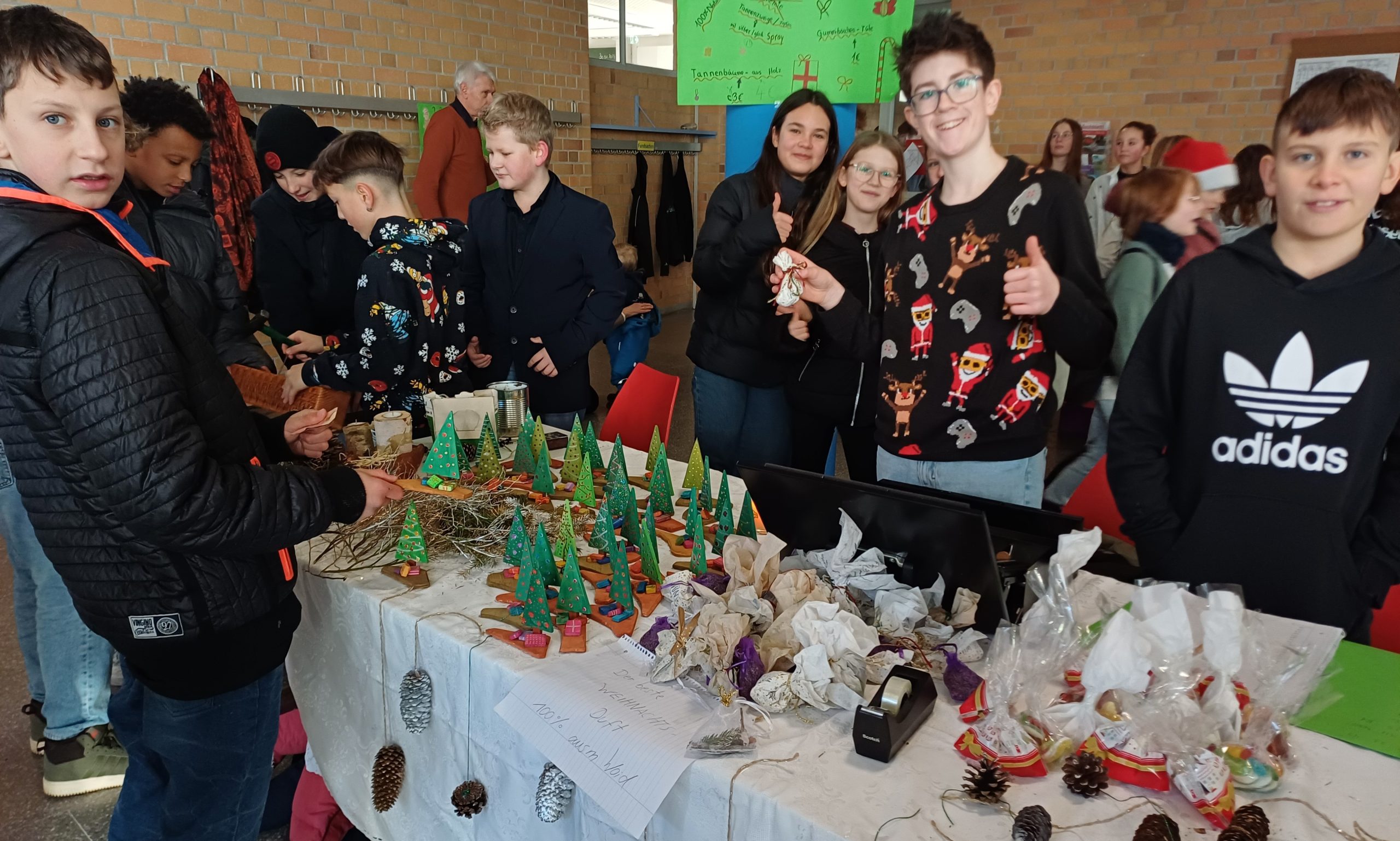 Aula und Innenhof der Schule verwandelten sich dank der Organisation durch die SMV mit ihrer Leiterin StRin Bettina Graf in einen duft- und lichterfüllten Weihnachtsmarkt mit der leckeren Mischung aus dem anregenden Geruch gebrannter Mandeln (mit Tüten mit einem Überraschungseffekt!), Waffel- und Würstelduft sowie Musikklängen. Jede Klasse ließ sich dazu etwas Besonderes und Kreatives einfallen, so dass viele Stände eine leuchtende und helle Atmosphäre verbreiteten. Dabei überraschten die Schülerinnen und Schüler wie jedes Jahr mit zahlreichen einfallsreichen Aktionen: Von einem Stand mit wundervollen, selbst hergestellten Last-Minute-Geschenkideen wie Minikrippen, Lichterhäuschen oder Wärmebalsam bis hin zu einem innovativen „Woidstand“ mit Duftsäckchen aus der Natur und schönen Tannenzapfendekos. Die 5. Klasse bot im Sinne der Nachhaltigkeit leuchtende Kerzen hergestellt aus Wachsresten, dazwischen faszinierten kreative Filzarbeiten oder Perlensterne und Losstände brachten Spannung. Auch der Honig aus der schuleigenen Imkerei versüßte den Besuchern die Vorweihnachtszeit. Ganz mutige konnten Mysteryboxen erwerben, deren Inhalt eine besondere Weihnachts-Überraschung darstellte.