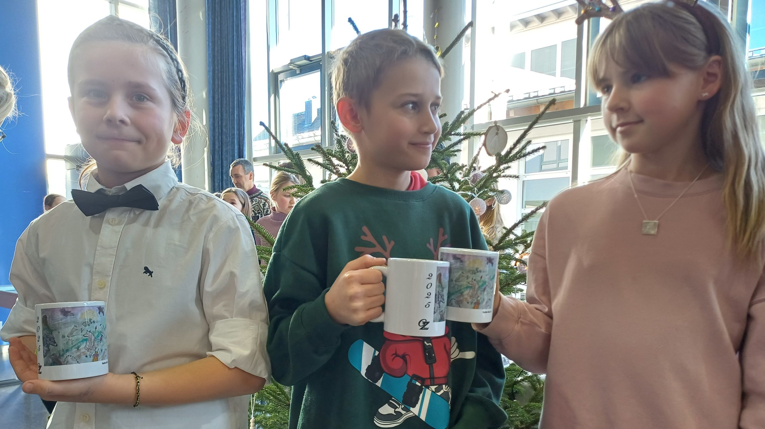 Punsch, und fairen Kaffee gab es in selbst mitgebrachte Tassen oder man konnte die wunderschön gestaltete Schultasse mit neuem Wolfslogo des Jahres 2025 erwerben.