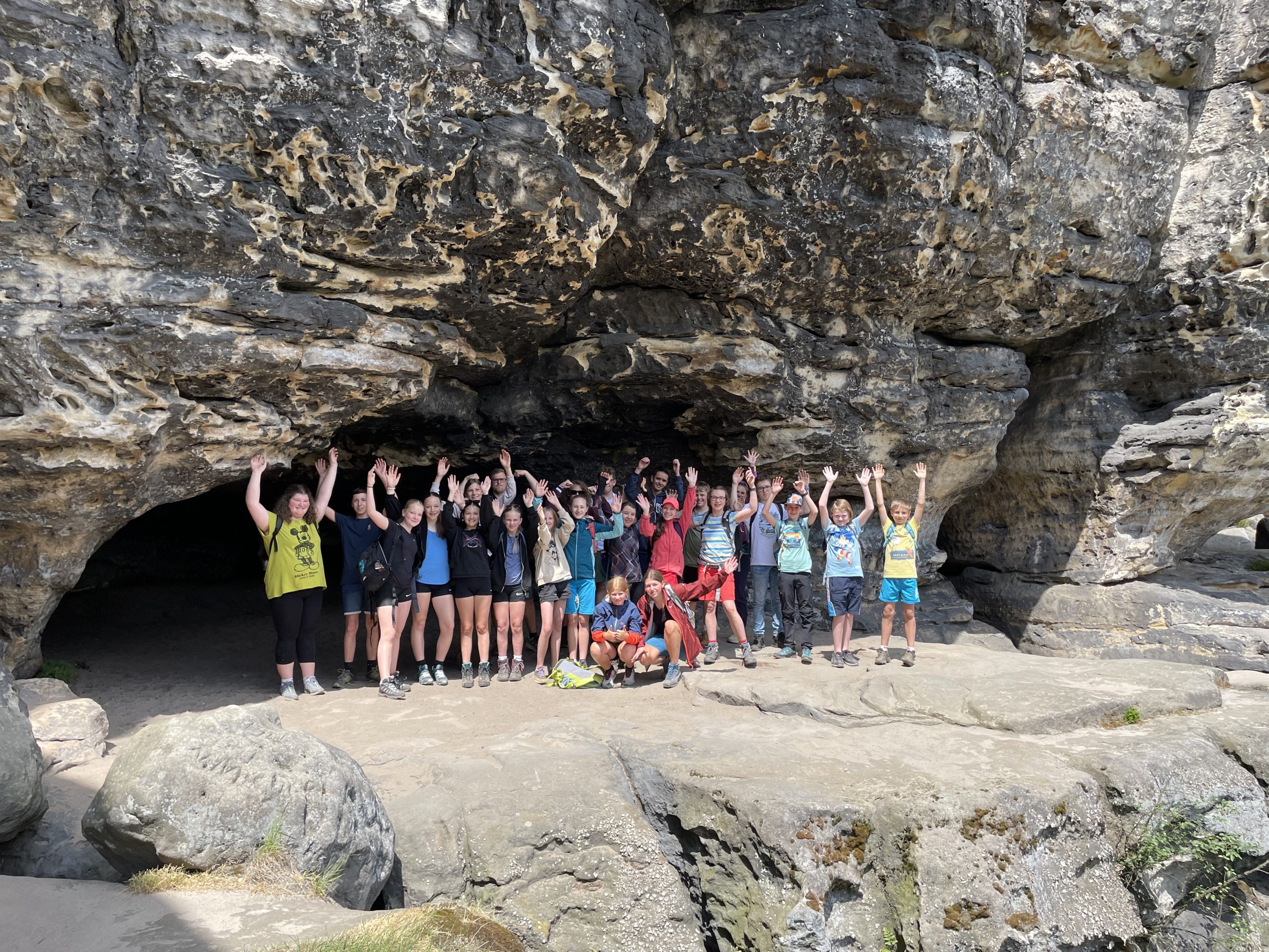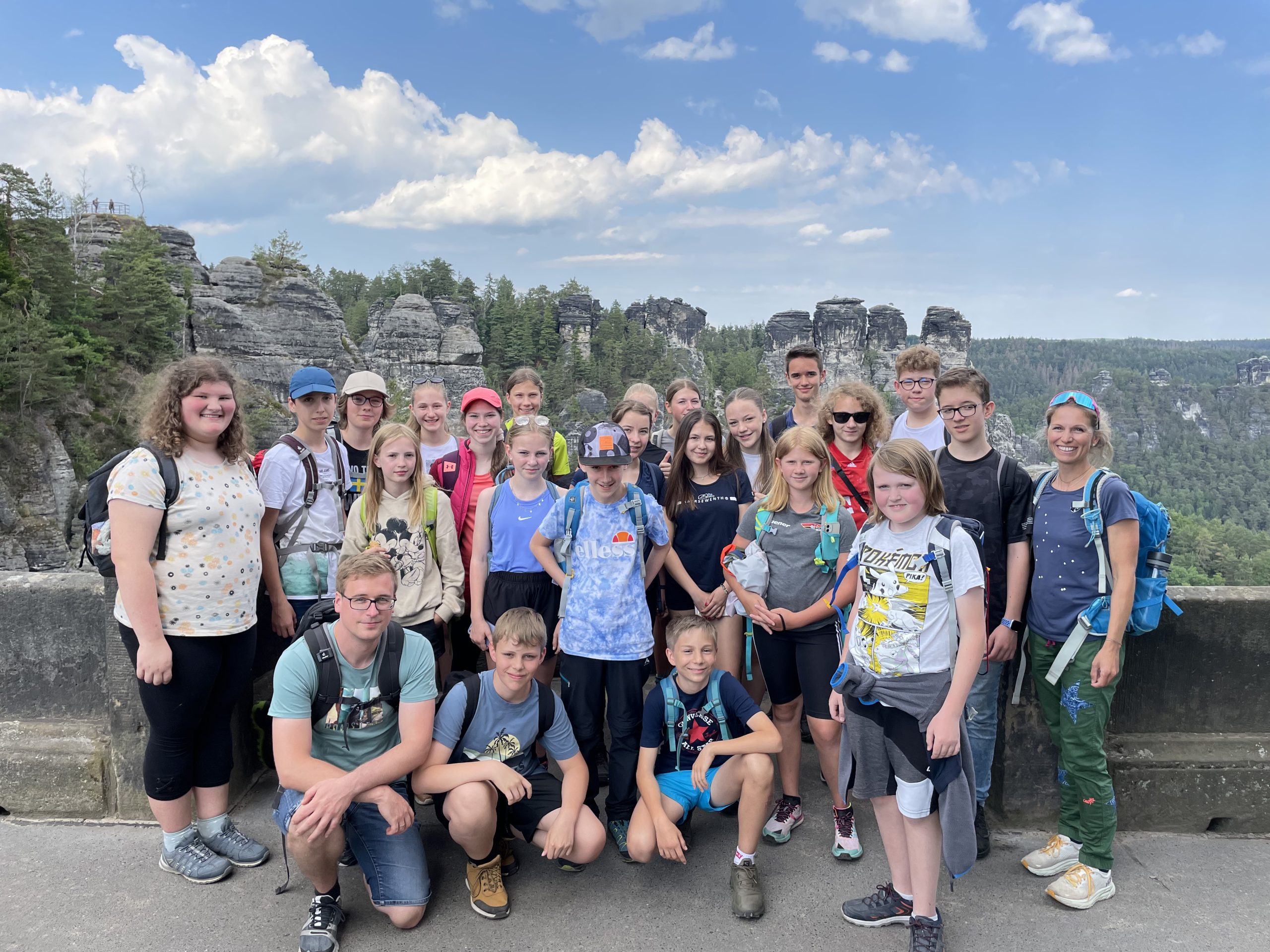 Es ist schon langjährige Tradition in den beiden Nationalparkschulen… und so machten sich auch in diesem Jahr wieder 22 Schüler*innen mit ihren beiden Biologie-Lehrern auf in den Nationalpark Sächsische Schweiz. Das Ziel war das Jugendgästehaus im Liebethaler Grund im Herzen des Nationalparks Sächsische Schweiz. Zusammen mit einer Schülergruppe vom Gymnasium in Sebnitz erkundeten sie die für Bayerwäldler ungewöhnliche Natur rund um die faszinierenden Felsenmassive des Elbsandsteingebirges. Zusammen mit Mitarbeitern des Nationalparks Sächsische Schweiz, wurde ein buntes und erlebnisreiches Programm für die Jugendlichen auf die Beine gestellt. So startete die Woche mit einer Erkundungstour durch den Liebethaler Grund, entlang des Malerwegs, vorbei an Kletterfelsen, tiefen Schluchten, romantischen Mühlen und dem imposanten Richard-Wagner Denkmal. Am nächsten Tag erwanderten sich die Schüler*innen von Wehlen aus die Bastei, die berühmteste und beeindruckendste Felsformation der Sächsischen Schweiz und setzten dann mit einer Fähre ans andere Elbufer über.