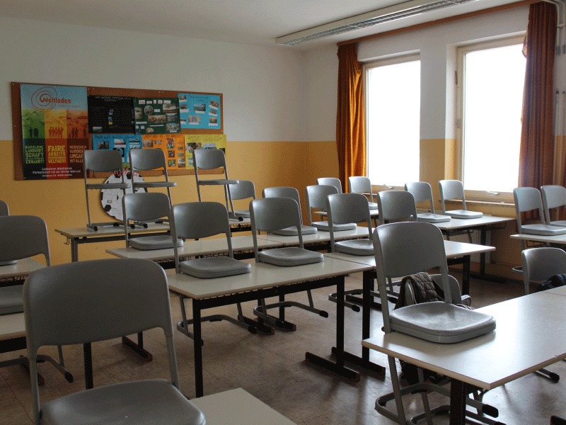 Ganz einsam, leer und verlassen scheint dieses alte Klassenzimmer.