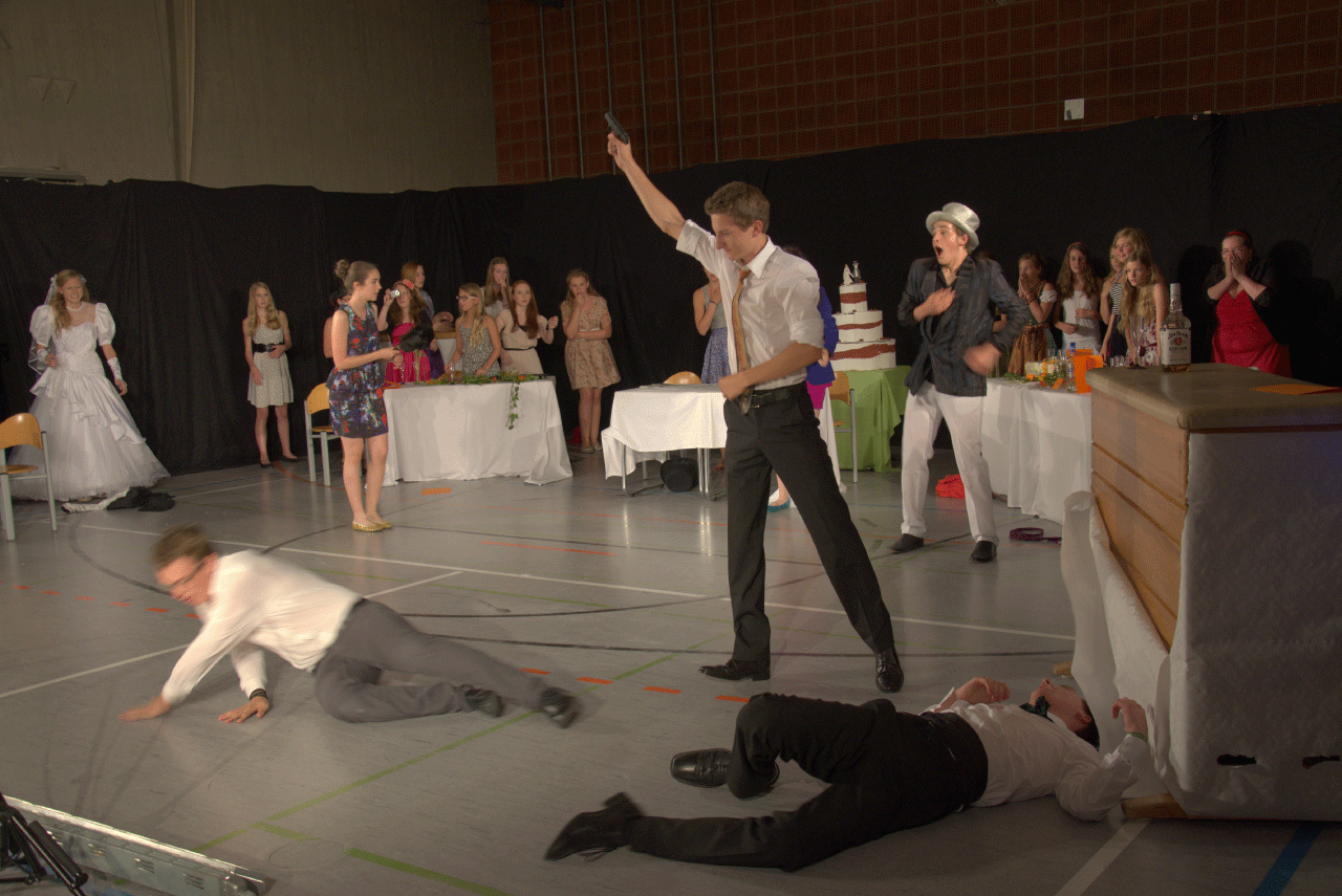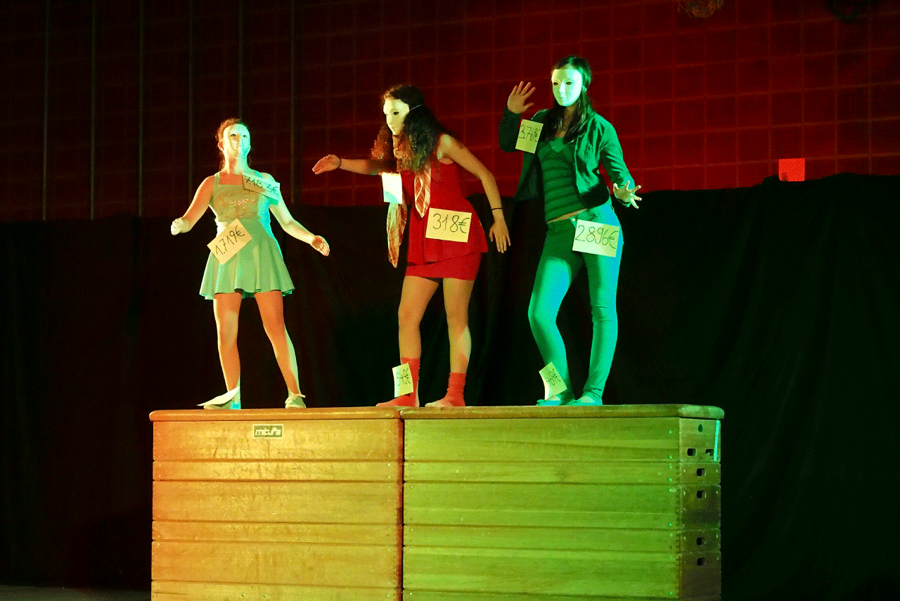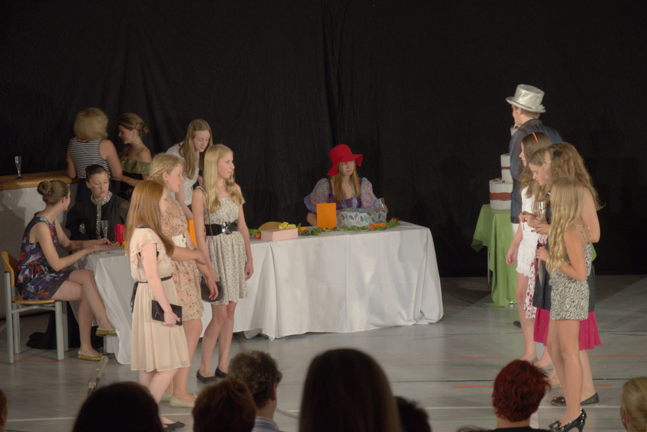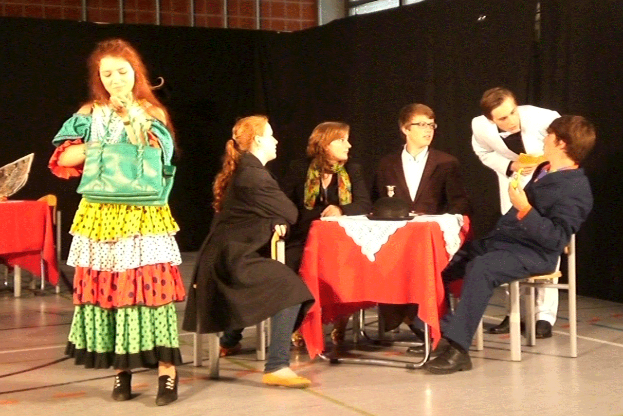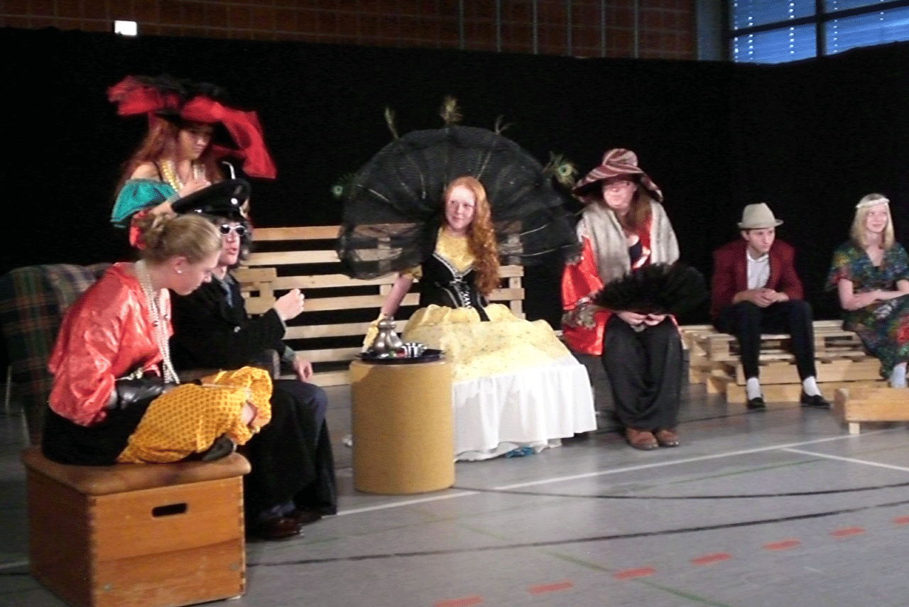In unserer Theaterarbeit geht es nicht (nur) ums Verkleiden, sondern um das Aus-und Erleben verschiedener Charaktere, deren Emotionen und dem Darstellen von Geschichten. Wir entwickeln jedes Jahr gemeinsam mit der Gruppe ein eigenes Stück, das an zwei Abenden der Schulfamilie und dem interessierten Publikum präsentiert wird.